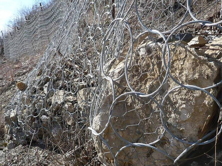 环形被动防护网又称为ROCCO环形网,是由数股钢丝盘结成环形相互套接而形成的被动拦石网,采用热镀锌工艺。在落石冲击过程中能发生自身几何形态改变,具有更为突出的柔性特征,能够实现高3000kJ以上动能的落石阻拦。并且能进一步简化结构形式(如支撑绳和减压环的配置),方便局部受损后的维护修复,ROCCO环形网已经成为一种替代钢丝绳网系统的新型拦石网(RXI型),实现了SNS被动防护系统的更新换代和升级。