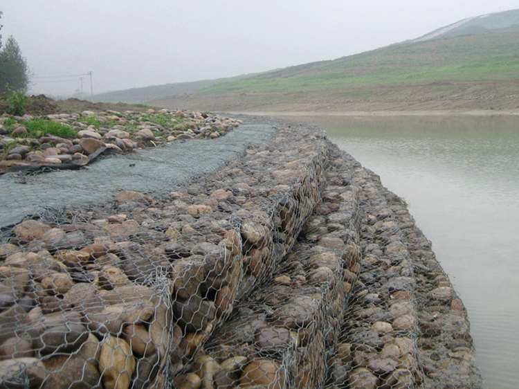 护坡雷诺护垫也叫石笼护垫,格宾护垫,是指由机编双绞合六边形金属网面构成的厚度远小于长度和宽度的垫形工程构件。护坡雷诺护垫中装入块石等填充料后连接成一体,成为主要用于水利堤防、岸坡、海曼等的防冲刷结构,具有柔性、对地基适应性的优点。